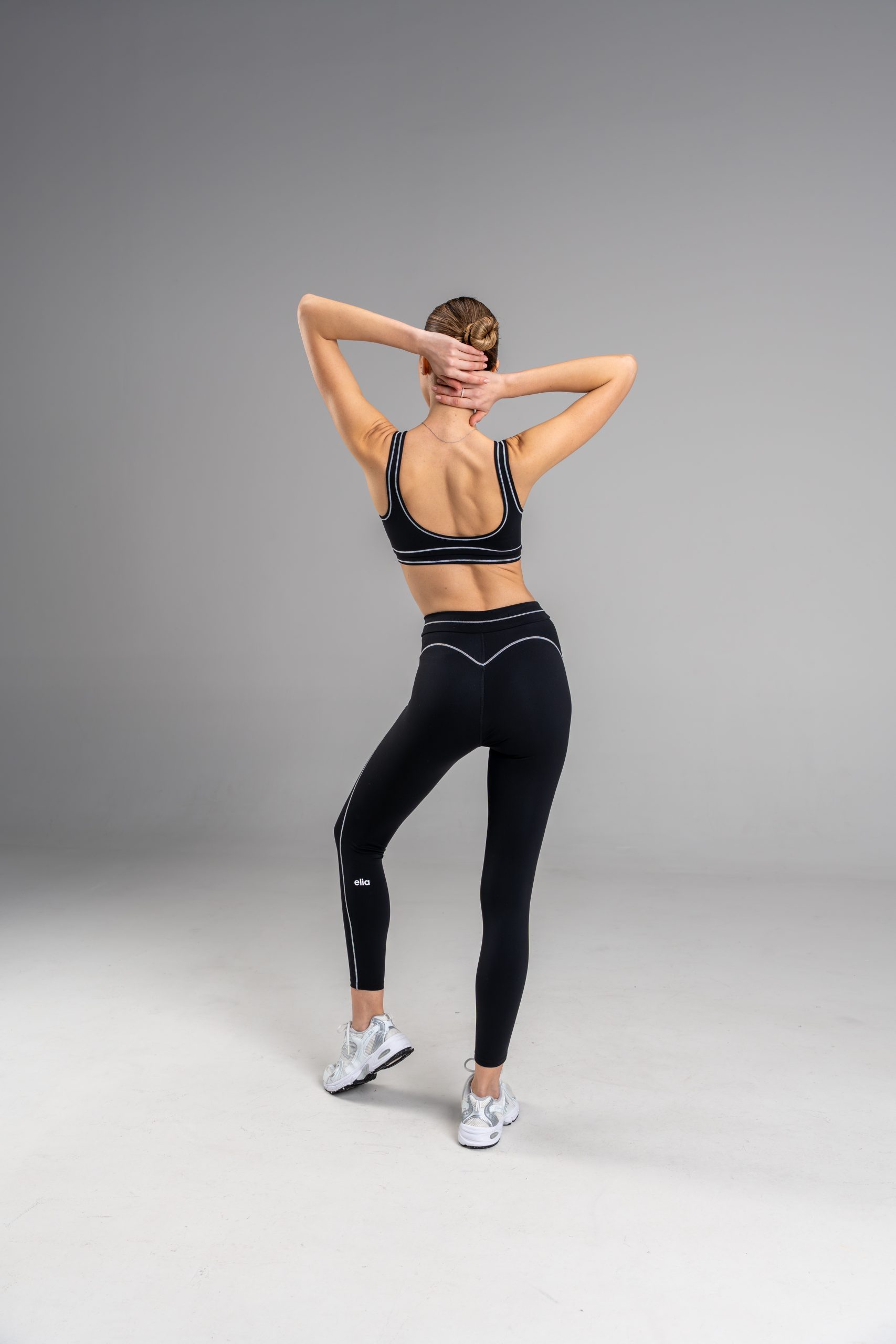 Black Sculpt Leggings su dizajnirane da pruže savršenu ravnotežu između potpore, udobnosti i sofisticiranog izgleda. Napravljene od glatke, elastične tkanine koja se prilagođava telu i prati svaki pokret, pružajući osećaj sigurnosti i lagane kompresije. Visoki struk vizuelno izdužuje figuru i naglašava liniju tela, čineći ove leggings idealnim kako za trening, tako i za celodnevni athleisure stil.